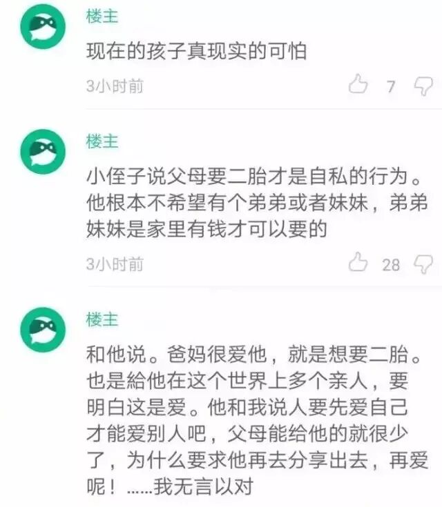 问题可以有很多种答案,主要还是看那些要二胎的父母,是以什么心态抚育下一代的。