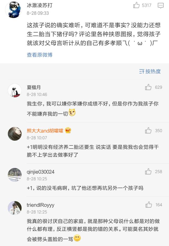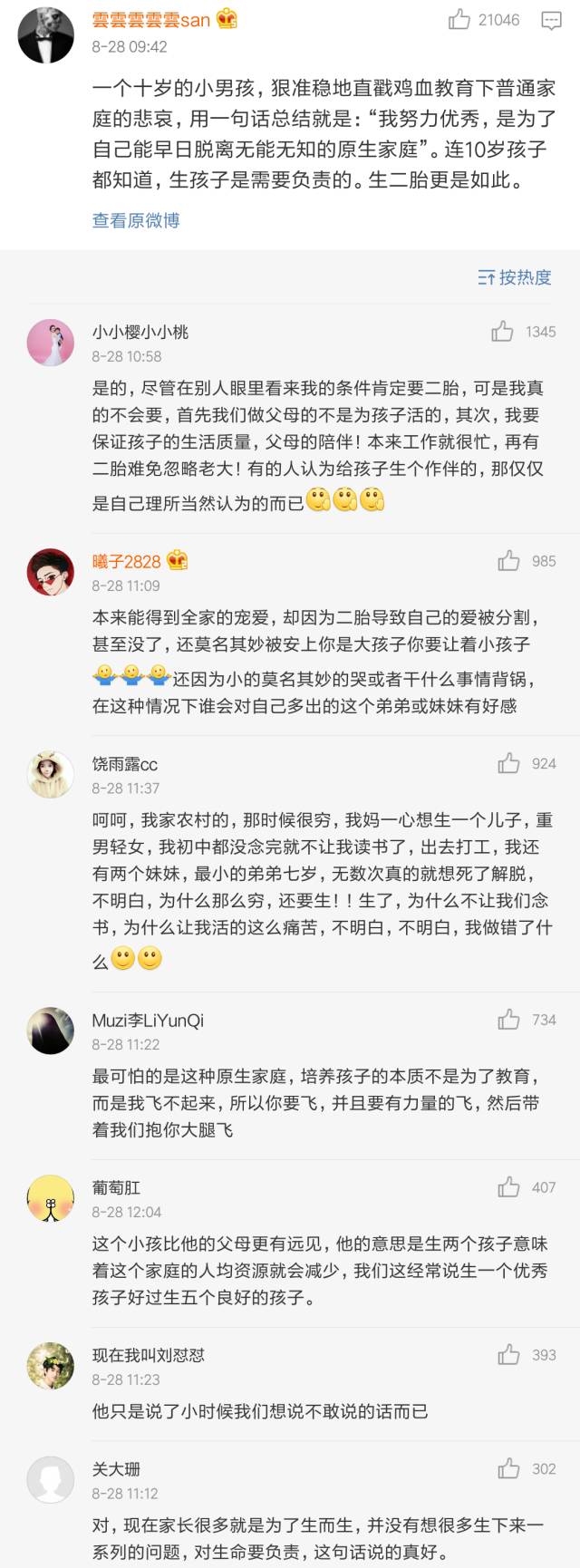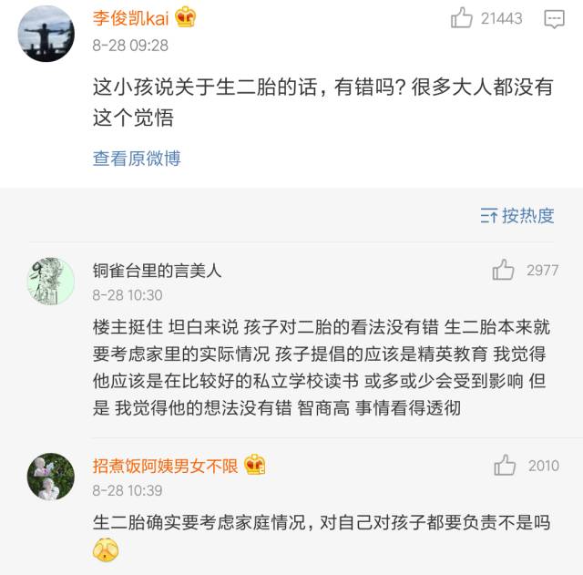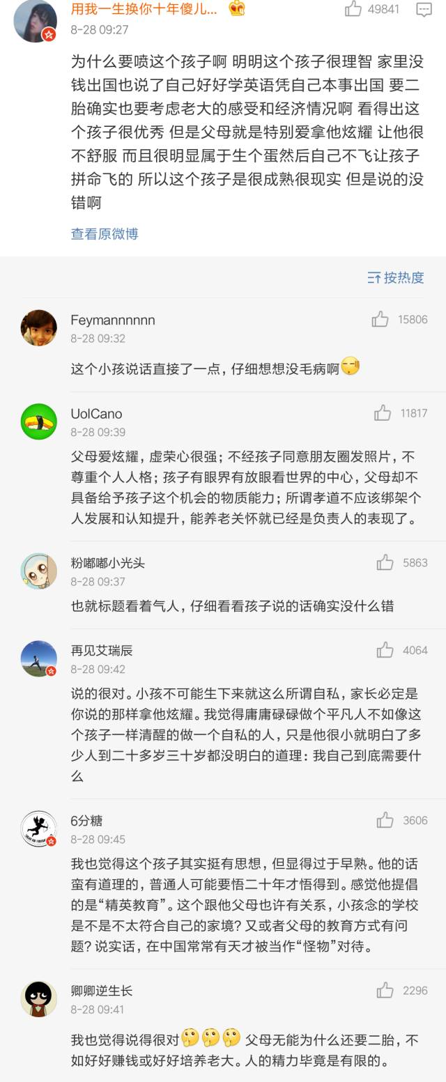 最近一个小学生,因为自己一番犀利的言论火了,关于生二胎、关于父母的教育方式,他的观点引起巨大争议。相关微博被转了好几万,引发上万人讨论。