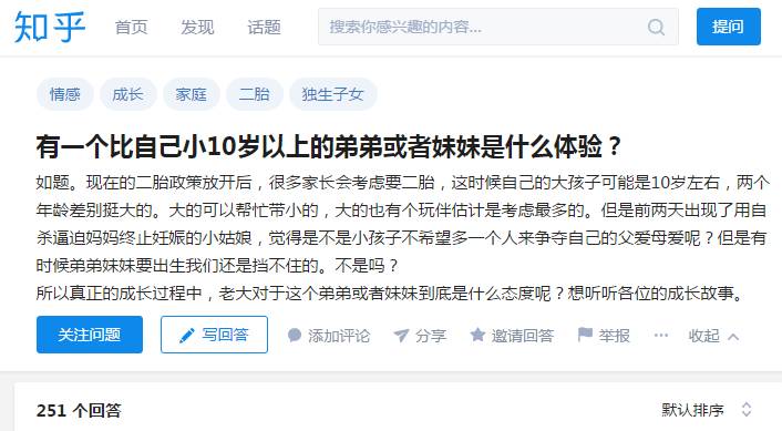 两百多个回答看下来,我们可以发现,“老大”们焦虑的,是害怕弟弟妹妹分薄了父母的爱和家庭的资源,打乱了他们原本平静和幸福的生活。