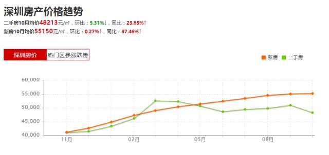 深圳二手房10月均价48213/平方米