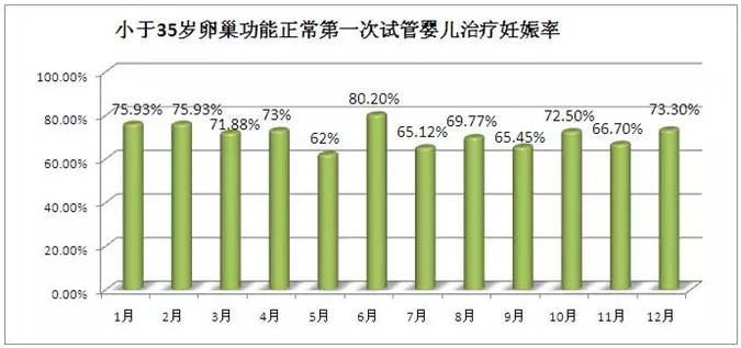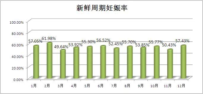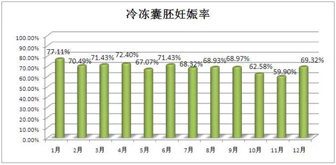 让我们来看看我院生殖中心去年全年的妊娠率吧,可能会给高龄生二胎的您一些信心哦: