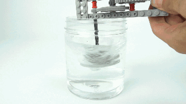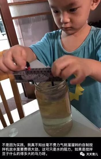 比如搅拌器,做好放入水中,摇动操纵杆,水中的轮子就会迅速转动,搅得水花四起。