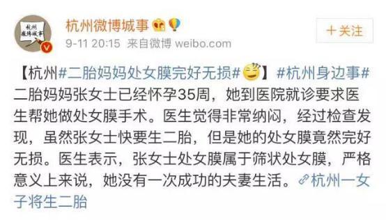 上个月,杭州一名孕35周的90后张女士去医院产检时,她对医生说:“医生,我这一胎在剖宫产的同时,能把处女膜一起做了吗?”医生一停彻底懵圈了。