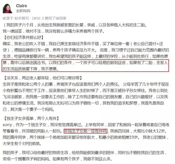 而关于不生二胎的理由,我在知乎上有看到过这样一个获得高赞的回答: