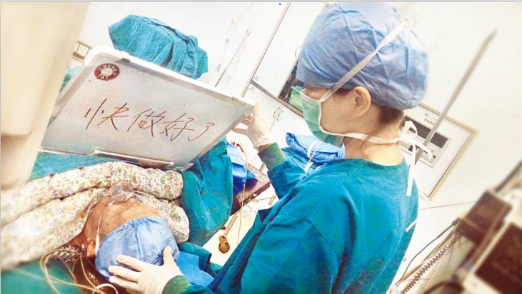 你想过为一名又聋又哑的患者怎么让他配合手术吗?没错,麻醉手术科副主任医师张艳做到了。为了在手术过程中更好地服务这名聋哑患者,她全程用手写板和肢体语言与患者沟通,了解患者手术状况,确保手术安全。事后,有人把当时的照片放到新青年麻醉论坛上交流,竟被推荐到论坛首页,获得麻醉同行点赞。