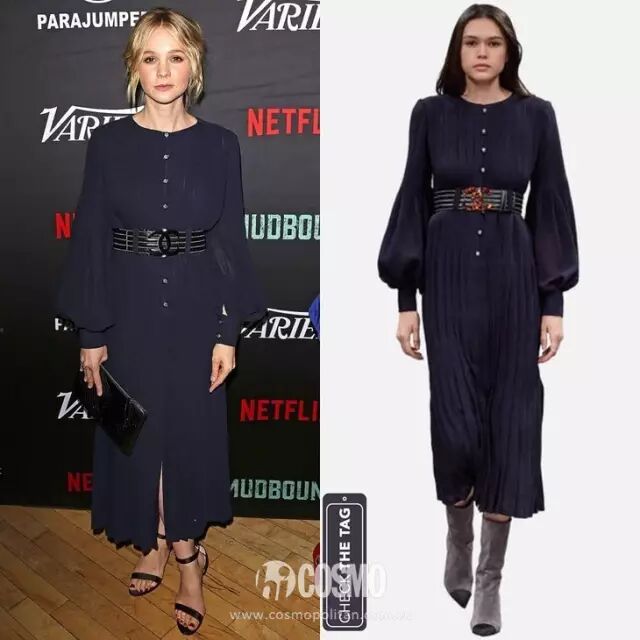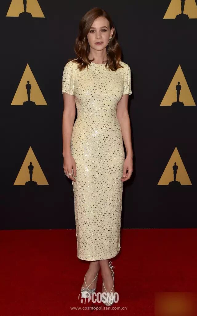 2015年11月,刚刚生完娃儿两个月的Carey Mulligan出席Arts And Sciences红毯就已经有!腰!了!
