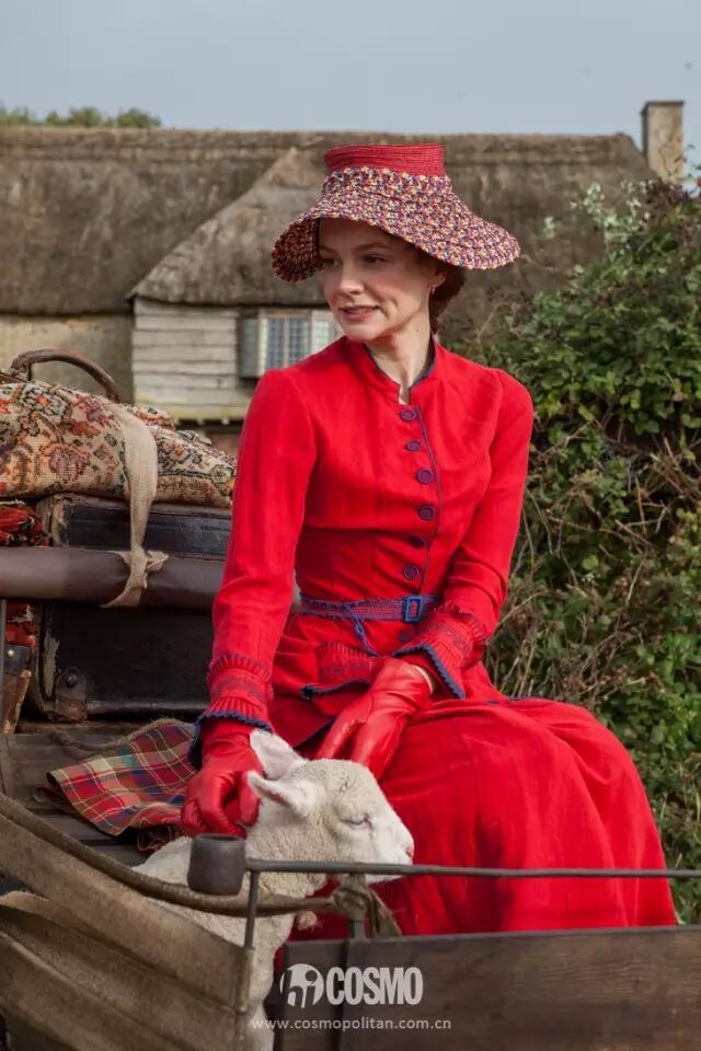 Carey Mulligan非常适合这种有点年代感,但却很高级的扮相,因为她的脸就透露出一种充满英伦腔调的故事性。这点在讲述维多利亚时期故事的《远离尘嚣》中尤为明显,穿上长裙,梳着俏丽卷发的Carey Mulligan仿佛就是属于那个年代的迷人女性。