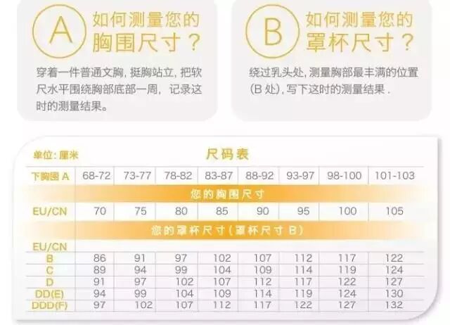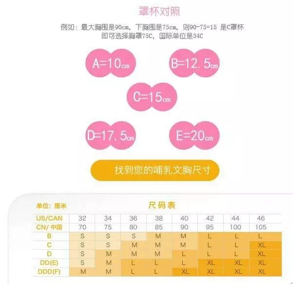 对于不确定自己尺码的妈妈,如何测量胸围?如何测量您的罩杯尺寸?提供了一下方法对照。