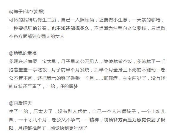 生不生二胎,是每对夫妻的自由,但在中国现在的国情下,生二胎最考验的还是女人,毕竟怀孕生养,女人要投入的精力太多太多。如果你没想清楚后果就生,那么最后受苦受累的还是你自己。