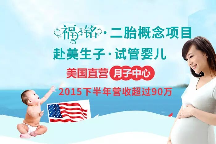 福铭-二胎概念项目,提供赴美生子和试管婴儿一站式服务,2015年下半年营收超过90万,拥有直营月子中心,品质服务保证,用户口碑传播。