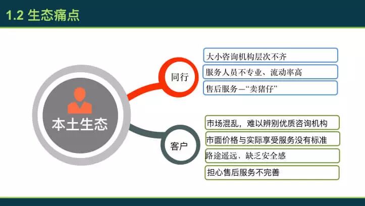 由于赴美生子和试管婴儿行业非常新,造成行业内服务混乱,咨询人员不专业、造成信息误导,从业人员培训规范,行业流动率较高。其中,售后服务是最大痛点,国内公司基本上是做中介服务,就是所谓的“卖猪仔”,将客户“卖给”美国当地的月子中心,无法保证客户实际得到的服务品质。