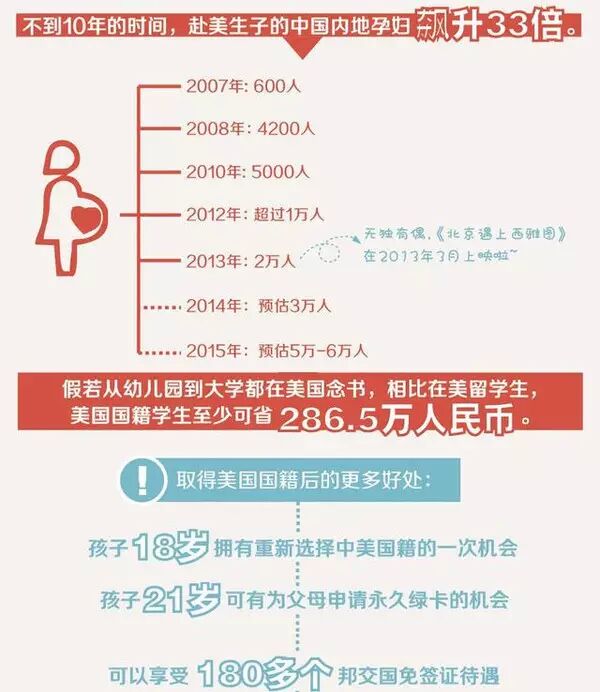 · 2008年随着美国政府对大陆居民开放了个人赴美旅游签证后,迎来了首个赴美生子的小高潮。