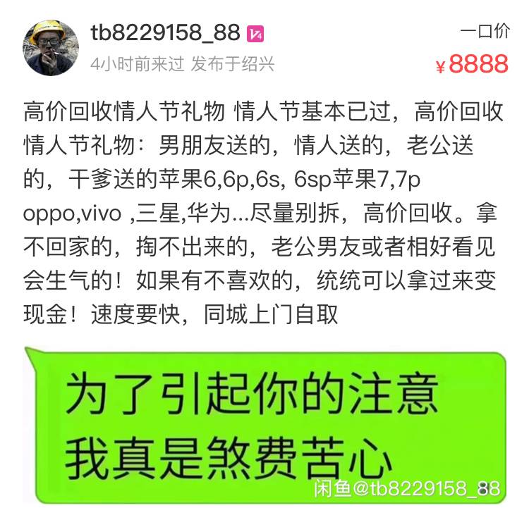 当然,也有很多人看见了其中的商机,默默潜伏在线上,等待某个土豪男票送的手机,因为各种不可描述的原因不能被带回家,而被妹子悄悄抛售折现。