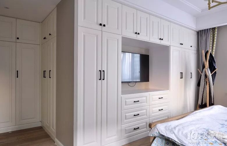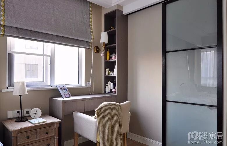 ▲靠近墙面做了化妆台连着柜体,实用+10086。