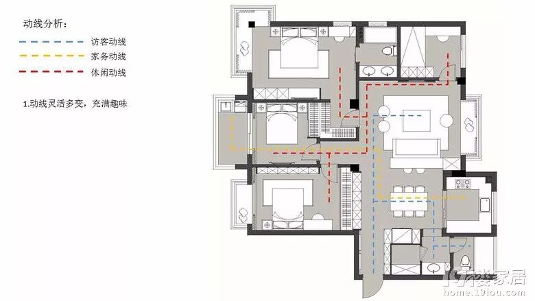 主要动线几种在客厅位置,这样更好的利用其他空间。