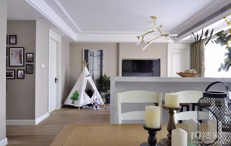 ▲电视柜和墙体一体的设计小花觉得特别赞,在这里也安利给正在纠结选设计方案的你,楼主也说道,这样就不用担心正是调皮捣蛋年纪的孩子在客厅里横冲直撞时磕到碰到了。凹进去的部分采用科定板制作。