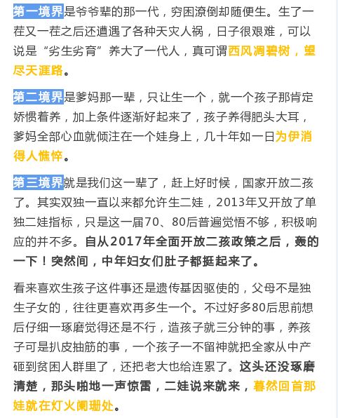 第一胎是女儿想要个儿子美其名曰“不多生几个将来没人养”的老思想驱动者,或者“老了生病多一个孩子分担负担”的超现实魔幻主义执行者。