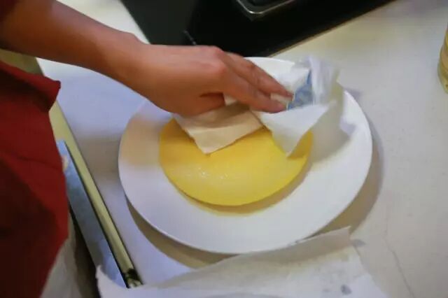庞云芳先是烤了一个巴掌宽的鸡蛋圆饼,然后看看手机,决定将饼裁小一圈。裁掉部分她吃了!“一般剩下的部分我都是一边做一边吃掉的,哈哈。”