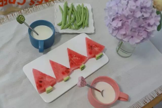 但孩子们不一定配合,此刻他们就等不及,女儿抓起勺子:“我要舔勺子!”,儿子跟着叫:“我要舔勺子!”。女儿抓起西瓜片:“我要吃西瓜!”,儿子跟着抓一块,“我要吃西瓜!”