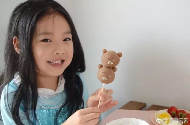 姐姐依呀在享用早餐。图自妈妈@萧雪闲云 微博
