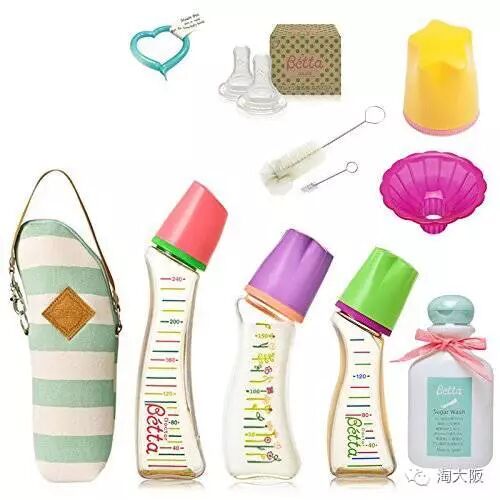 要是觉得哺育用品太多样选择上太麻烦,那就选这一个套装就够了。这十件套里包含3个不同规格的奶瓶、2枚奶嘴、奶瓶清洗液150ml、粉色漏斗、马毛瓶刷2件套、奶瓶套、替换奶盖以及通气针一枚,整个哺育用品都齐全了,方便又省事。