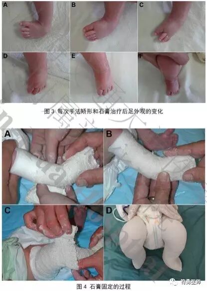 (以下是需要着重强调的问题)Ponseti方法治疗过程不仅需要医生严格按照方法要求操作,也需要家长的积极有效配合:I)手法和石膏:这个过程在医院门诊的石膏室由医生操作完成。对新生儿来说,在每次手法矫形和石膏固定前的3个小时内,一般建议不要对患儿进行喂哺,而是在医生开始治疗前准备好奶瓶(一侧足大约需要准备1瓶奶),开始手法治疗时即开始喂奶,这样可以保证患儿在治疗过程中保持安静,有利于治疗有效开展;II)支具(这个阶段极为关键):支具佩戴预防畸形复发的阶段通常由医生指导支具佩戴方法和佩戴时间,但是这个阶段的患儿是在家长的看护下完成支具佩戴的,所以家长一定要认识到良好的支具佩戴对于畸形复发预防的重要作用,一定要完全按照医生的要求佩戴好支具,这是治疗成功的关键;III)复发:不能按着医生的要求佩戴足外展支具或无法达到要求的佩戴时间,是Ponseti方法治疗后马蹄内翻足畸形复发的最根本原因。马蹄内翻足任何一部分畸形成分再次出现即为马蹄内翻足畸形复发,如果患儿不能按照要求很好的佩戴支具,应需要经常就诊复查,或者家长怀疑患儿足部外形异常也应立即就诊。