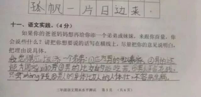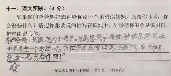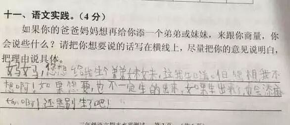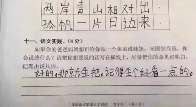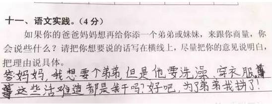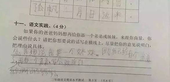 不过,孩子的“神回复”可不仅仅是这些,最近,又有一道小学生语文试卷上的实践题火了,孩子们“清奇”的脑回路,又一次让家长都笑哭了。