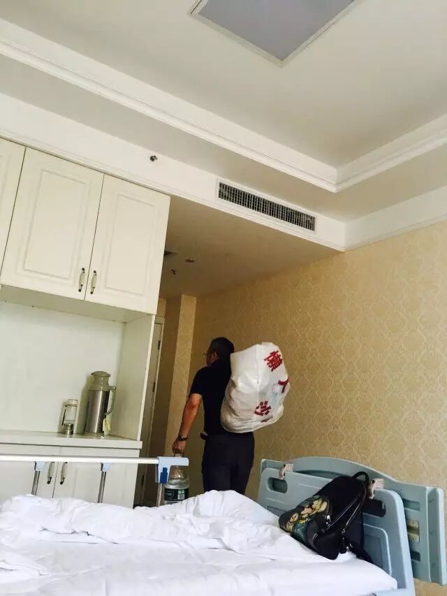 ▲ 出院时,张先生扛着大兜物品的背影,看着想笑,却又好想说爱你。