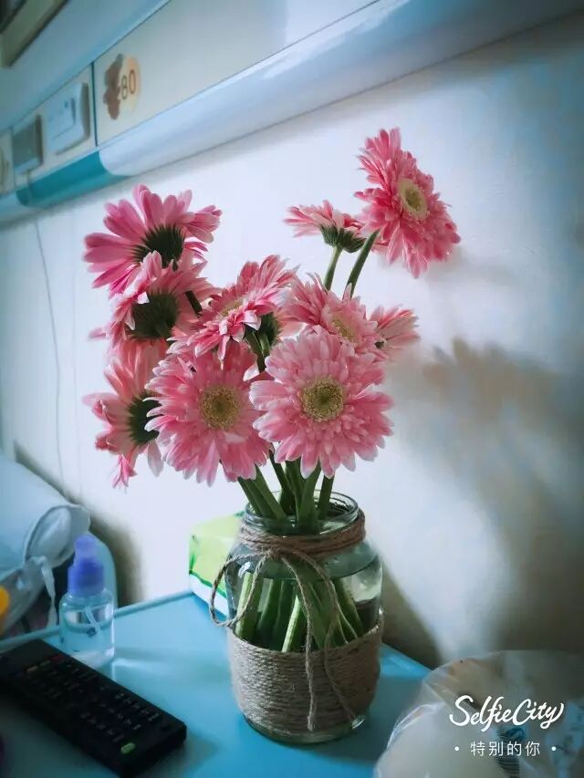 ▲ 病房里,亲嫂嫂送的花,还有自制的麻绳花瓶,一抹亮色,在这个酷暑郑州,窗外蝉鸣震天的夏日,清凉了我燥热不安的内心。