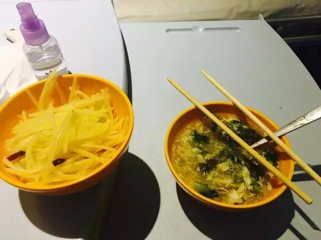 ▲ 某一餐,清水土豆丝,紫菜蛋花清汤。