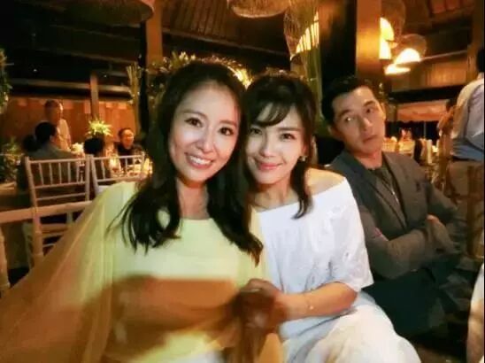 林心如结婚当天与林心如合照,真心觉得她们看上去只有二十岁出头的样子,小编也是羡慕嫉妒!
