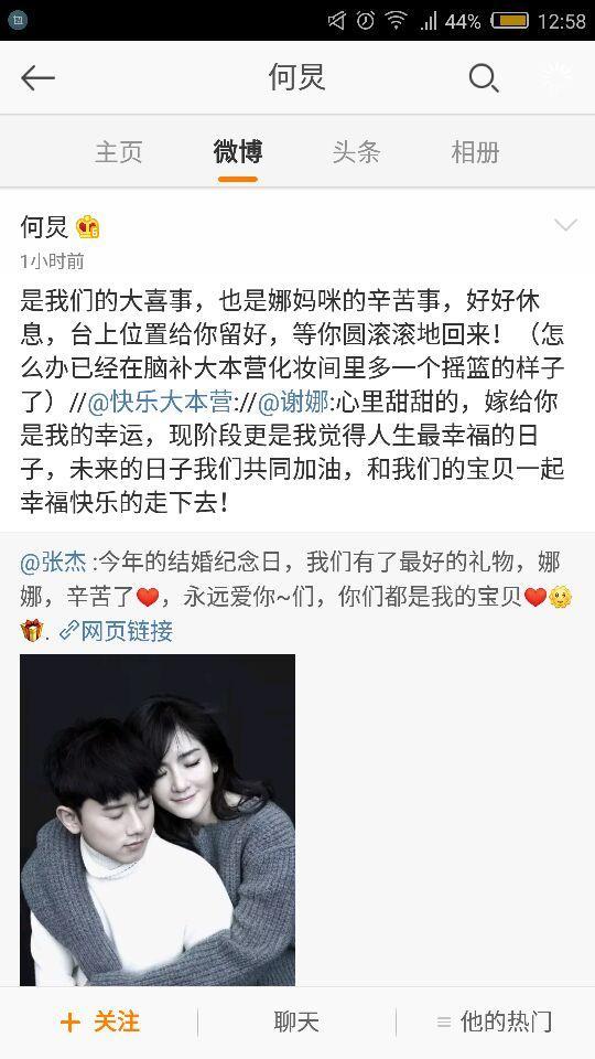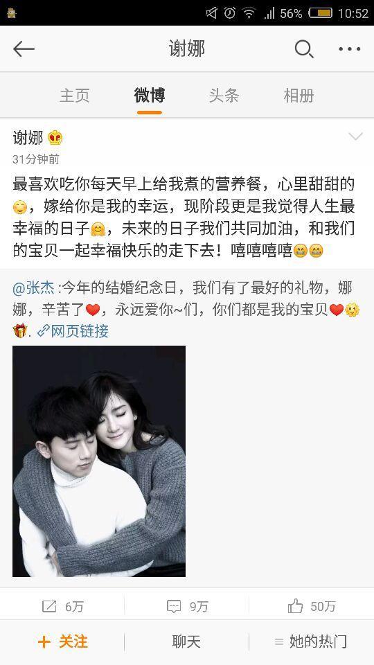 今天上午,张杰微博发文:今年的结婚纪念日,我们有了最好的礼物,娜娜辛苦了,永远爱你~们,你们都是我的宝贝。随后谢娜转发。