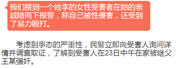 针对王某的说辞,受害人表示每次她都反抗,由于体力不及继父失败告终,有的时候王某还会暴力殴打她,让受害人更加害怕他。
