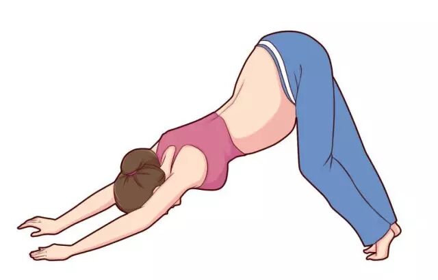 step1 跪在垫子上,双膝双手分开,四肢垂直于地面,双手向前移动一掌距离,吸气,臀部向上提,四肢伸直,让整个身体呈倒V字型,脚跟抬起,双手用力推地。