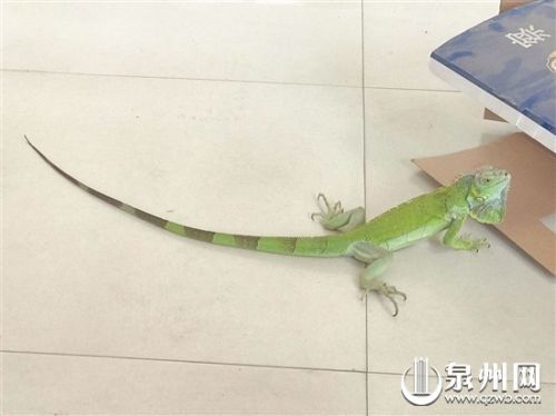 10月11日上午,南安康美派出所接到报警称,在雪峰经济开发区发现一只绿鬣(liè)蜥,目前,它被送往泉州海丝野生动物世界。