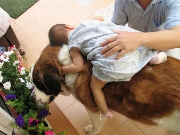小心不要让狗狗扑到身上,如果养的大狗,遛狗也交给爸爸牵着吧。