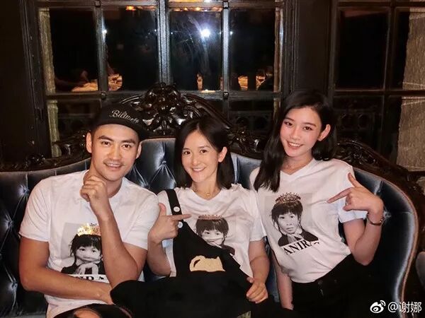 ▲谢娜还因为怀孕剪短了头发。和好友的合影中谢娜素颜出镜,居然还有尖下巴哦!