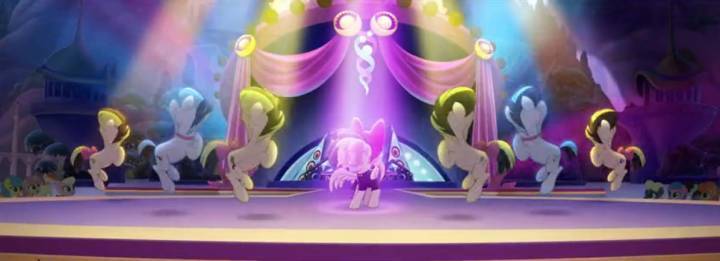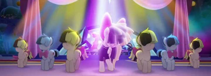 同时,主题曲MV也透露了部分电影细节。就在小马们为“妙音希雅”的演唱而欢呼雀跃时,小马国却迎来了将它们陷于危难的黑暗势力……