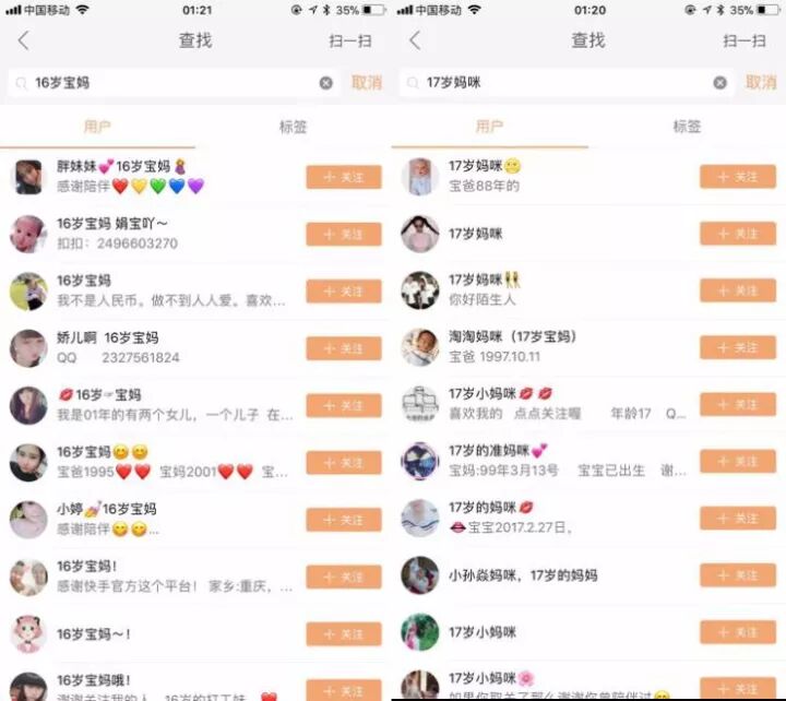 打开快手,以“17岁妈咪”“16岁宝妈”