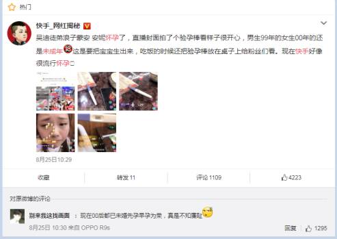 微博爆出快手网红吴迪的17岁的女弟子安妮怀孕,