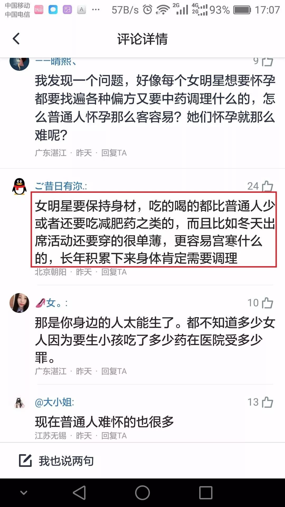 一众网友留言“祝好孕”的同时,