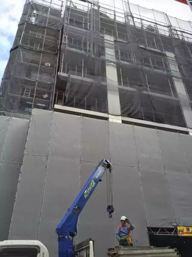 如果是商品房,那么接近完工之前,这些帷幕上还会多出大楼外观以及销售广告。这些帷幕直到大楼外观全部装修完后才揭下来,这样不仅可以防止施工中发生物品掉落事故,还可以美化环境。