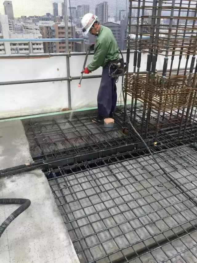 不可避免的施工现场会有需要现浇混凝土的,工人在浇混凝土之前用高压水枪清洗施工区域,不允许有任何的垃圾残留,从小细节能看出大整体。