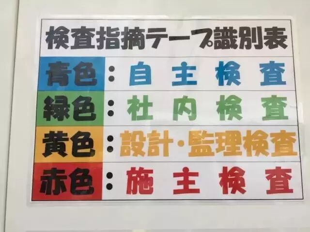 为此,日本人发明了很多实用简单的检查工具。不同颜色的标识,代表了不同条线的检查。
