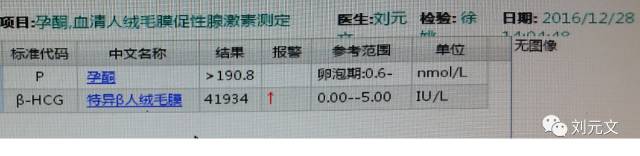 12.28患者试条自测怀孕,查血清确诊妊娠,并提示胚胎发育尚可。给予保胎治疗。(注:如果一个人很难怀孕,妊娠后一定要注意保胎,因为所有引起不孕的原因,都具备引起胚胎长不起来的条件,这类人怀孕后又很快流产的比例很高!)
