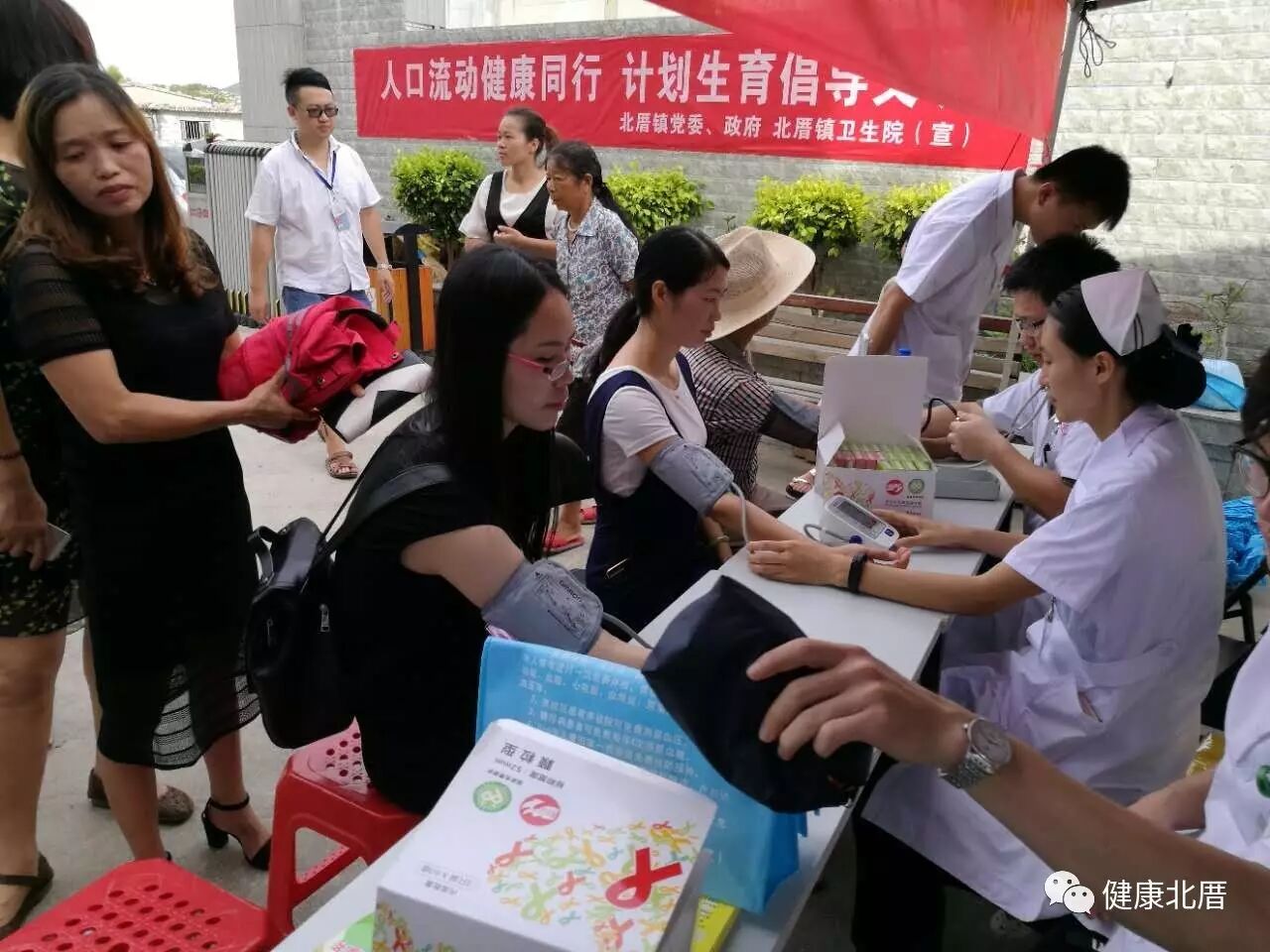 2017年7月18日上午,我镇计生办和服务所联合北厝镇卫生院在卫生院设立优生优育、生殖健康、计生政策、药具咨询等4处咨询台,工作人员热情接待前来咨询的群众,并由卫生院医生免费为群众测量血压,并回答他们有关生殖保健、养生等方面的问题。向群众发放了计划生育折页,主要内容有:《福建省人口与计划生育条例》、《关爱流动人口、优化人口环境》、《计划生育奖励优惠政策》、《全面二胎》、《生殖健康伴您行》及办理一、二孩生育登记一次性告知书等。
