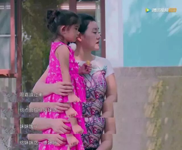 或许是出于礼貌,周妈妈看护浸浸很温柔,处处要求Jackson让着妹妹,她会强迫正在吃面包的儿子,把面包分给妹妹。