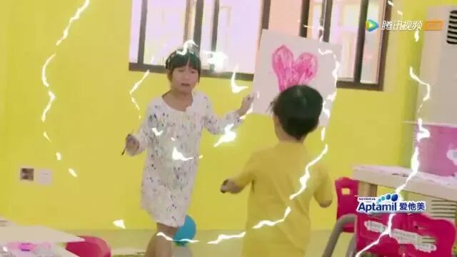 雅薷正在专心地画粉色的桃心,小螺丝用的是水墨燃料,涂了满手正兴奋,想掺和姐姐的作品,直接两巴掌,就把墨绿色的手掌印,烙在了姐姐的画上。