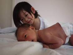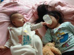 没有什么特别的原因,只是因为我们让她去睡觉,她突然开始歇斯底里地大哭,拼命地往我身上爬,怎么哄也哄不好。她哭了很久很久,一直哭到喘不上气,我才突然明白过来,姐姐是“吃醋”了,这近一个月的时间,她不再是家里的月亮,不能再和亲爱的妈妈睡觉,反而轮到了那个“新来的”天天霸占着妈妈。那天之后,我们把她的小床重新搬回了我们的房间——后来她再也没有歇斯底里过。