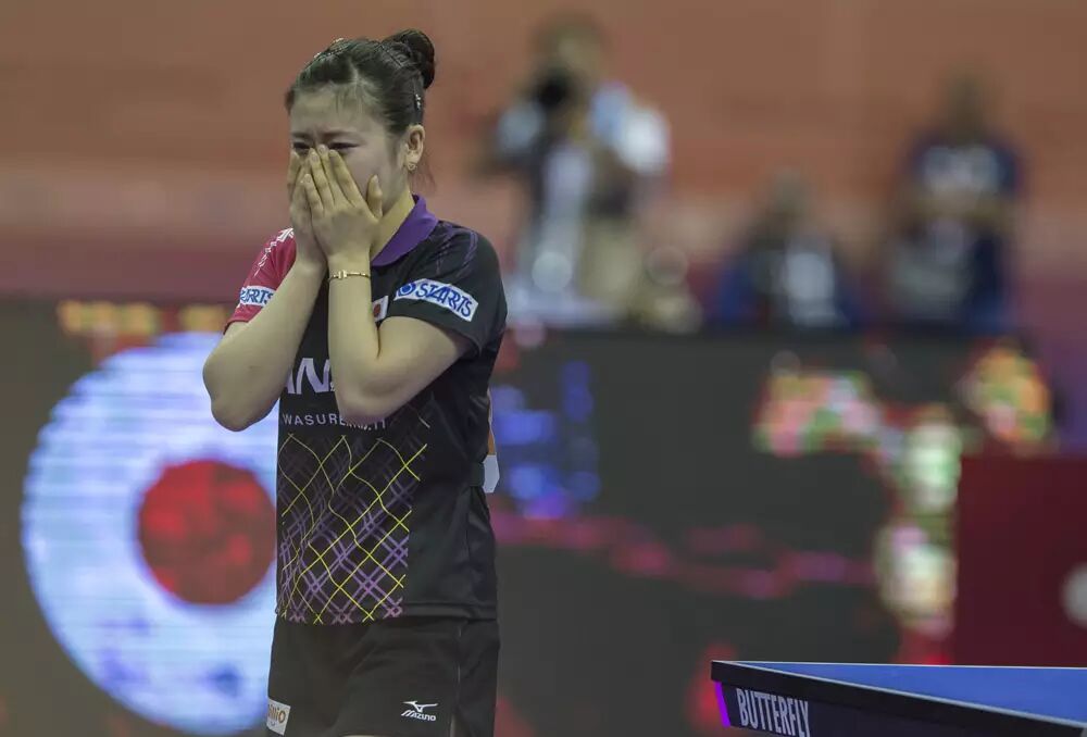 2016年3月3日日本队选手福原爱在比赛后喜极而泣。 图片来源:新华社
